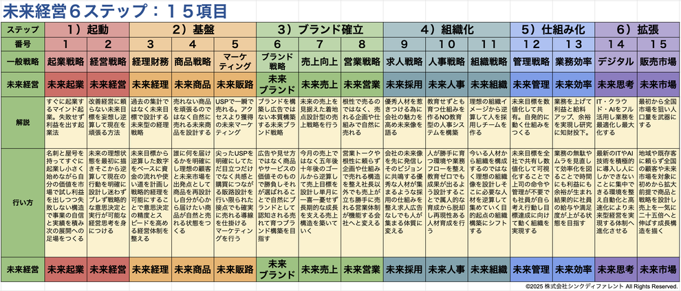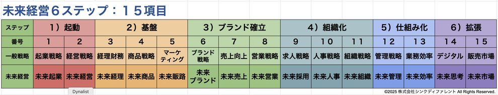 未来である、経理や商品・ブランド・営業・人事・組織・業務効率などを、全体体系を考えた、